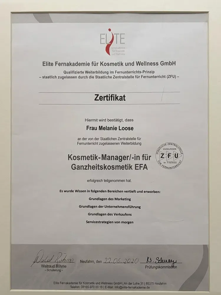 Seit meiner Ausbildung am Kosmetik-College in Dillingen zur staatlich geprüften Kosmetikerin arbeite ich seit 2005 als selbstständige Kosmetikerin.